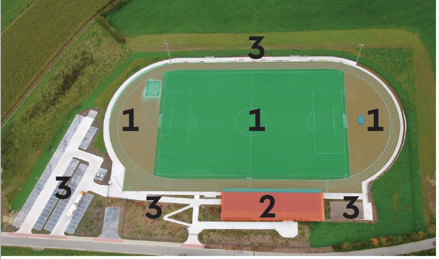 Ζώνη 3:αφορά τον προσβάσιμο ελεύθερο χώρο γύρω από την αθλητική εγκατάσταση